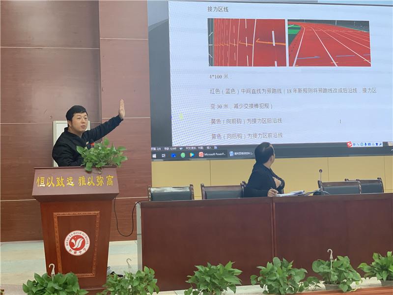 會議就本次運動會前期準(zhǔn)備工作及運動會當(dāng)天的工作進(jìn)行了統(tǒng)一安排。吳校長對方陣訓(xùn)練、物資整理、廣播稿收集、運動會當(dāng)天觀眾人員安排、宣傳工作等工作進(jìn)行了統(tǒng)一的部署。校長助理兼學(xué)生處主任龍永洪為全體裁判員進(jìn)行了培訓(xùn),將各個組織在運動會上的工作得以具體化,明確的分工是為了更好的完成運動會的各項工作,做到有條不紊。
