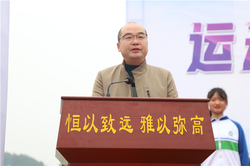 縣教育局副局長楊清輝先生講話,他強調參加體育運動不僅僅是一場體能、技術、水平的較量,是對同學們的生活品位、精神品格、意志品質的一次大檢閱。運動不僅僅是為了健康,它更是充滿靈動的生活時尚,是一種充滿韻律的生活情趣,是一種充滿活力的生活態(tài)度。